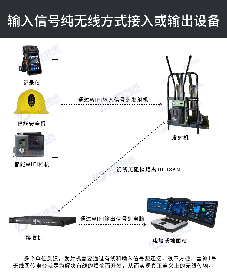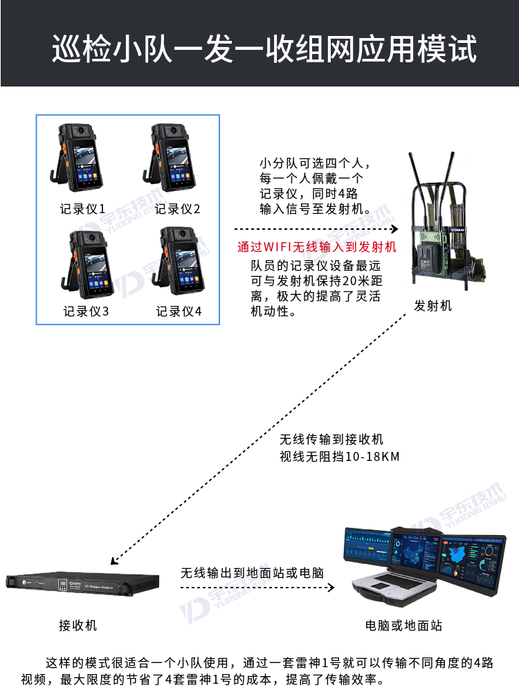 宇東技術(shù)雷神1號(hào)背負(fù)式高清無(wú)線圖傳電臺(tái),是公司針對(duì)應(yīng)急救援指揮、公安、反恐作戰(zhàn)、消防救援、邊防執(zhí)勤、海警海關(guān)巡檢、部隊(duì)拉練演習(xí)、森林消防等,在突發(fā)重大事件,斷網(wǎng)斷電,通信中斷的情況下,現(xiàn)場(chǎng)工作人員通過(guò)宇東雷神系列單兵圖傳電臺(tái),把現(xiàn)場(chǎng)采集的數(shù)據(jù)實(shí)時(shí)無(wú)線傳輸?shù)街笓]車/臨時(shí)指揮部大屏幕,讓指揮部領(lǐng)導(dǎo)對(duì)現(xiàn)場(chǎng)情況一目了然,節(jié)省了到達(dá)現(xiàn)場(chǎng)的時(shí)間,可快速做緊急指揮調(diào)度,最大限度的減少突發(fā)事件帶來(lái)的各種損失。